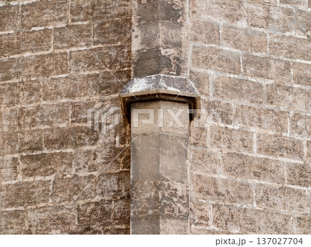 Weathered corner with textured stones, Rough stone corner featuring organic staining and mortar joints