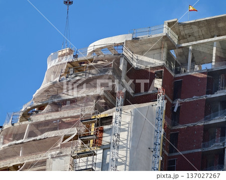 Historic brick exterior undergoing meticulous repair and preservation with scaffolding present