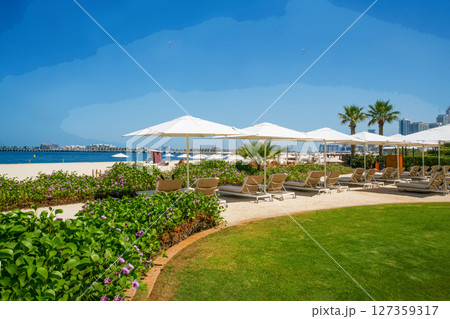 idyllic beach of Jumeirah with white sand and fine service and walm water of Persian gulf