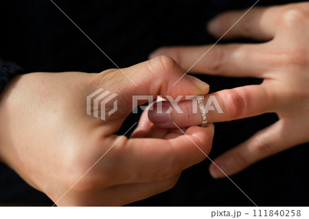 指輪を外す40代女性の手元