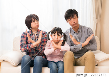 バツ印をする仲良し家族