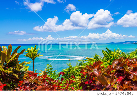 沖縄本島屈指のリゾート地 恩納村の美しい海 俯瞰