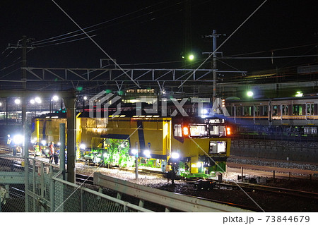 山陽線で夜間保線作業をするJR西日本の保線車両・マルチプルタイタンパ