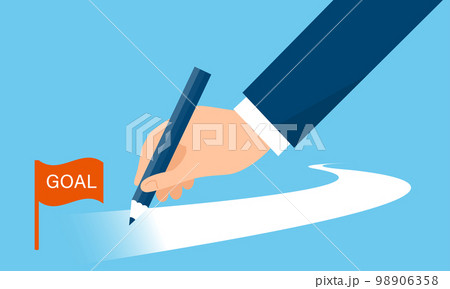 ゴールへの道筋を描く大きな手、ビジネスのコンセプトイラスト、ベクター