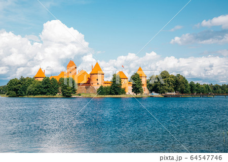 Old castle in sunrise time. Trakai, Lithuania, Eastern Europe.