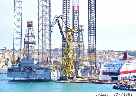 地中海 マルタ共和国 バレッタ港風景 キリンクレーン