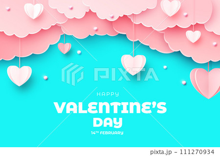 Happy Valentine's day banner design with paper cut cloud style border frame decoration.Vector illustration.