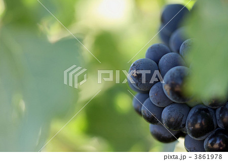 Lush, Ripe Wine Grapes with Mist Drops on the Vine