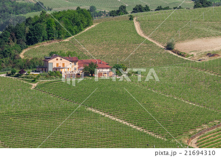 イタリアのバローロ村のブドウ畑景観