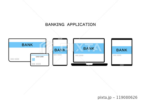スマホやパソコンやタブレットで銀行アプリを利用するイメージイラスト
