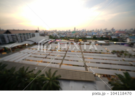 バンコクのナイトマーケット「ザ・ワン・ラチャダー」のピンボケ写真、背景素材