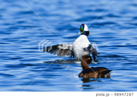 真冬に北海道の海辺や湖で見られる白黒のおしゃれな装いの渡り鳥、ホオジロガモ
