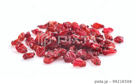 Dried berberis in closeup on white background