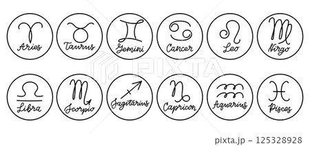 A set of zodiac signs. T-shirt print. Symbol for tattoo. Mixed media. Multi-colored objects. Elements of water, earth, fire and air. Vector illustration