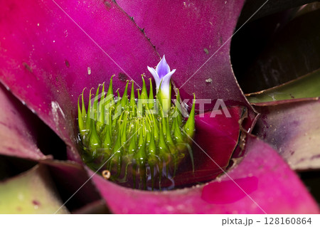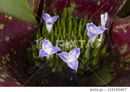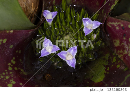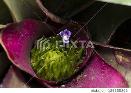 水に濡れた紫の花 熱帯植物(3月)アナナス・パイナップル科10