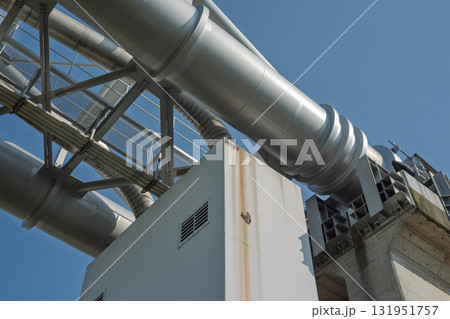 ほぼ下から見上げて見た水管橋・水道橋・縦構図