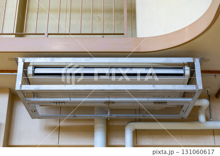 体育館に設置された後付けのエアコン