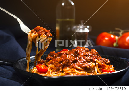 Pasta with sauce and vegetables, spaghetti. Traditional dish of Italian cuisine