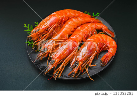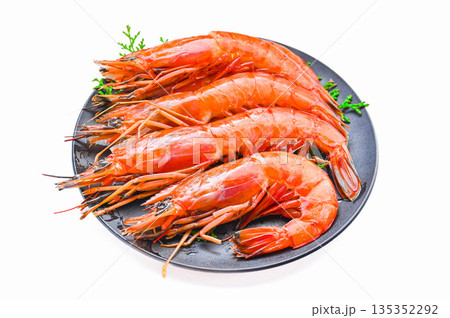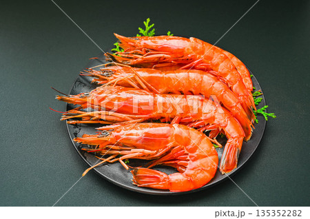 Frozen argentine red shrimp on head close up