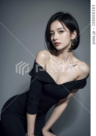 黒いセクシーなドレスを着た女性(AI生成画像)