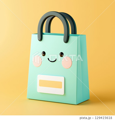 Cute happy shopping bag 3d render of teal gift bag