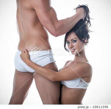 Lovers embrace passionately, isolated on white