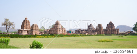 インドのカルナータカ州にあるパタダカル・ユネスコ・ワールド・ヘリテイジ・サイトのパノラマ風景