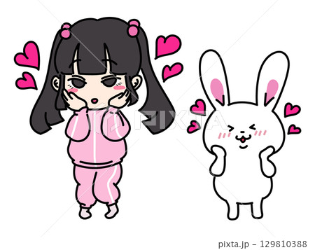 照れるツインテールの地雷系女子とうさぎちゃん
