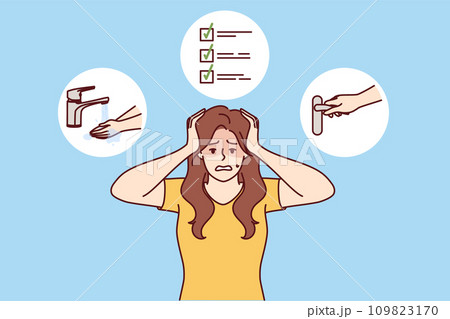 Woman with ocd syndrome clutches head for fear of contracting infection due to hygiene problems