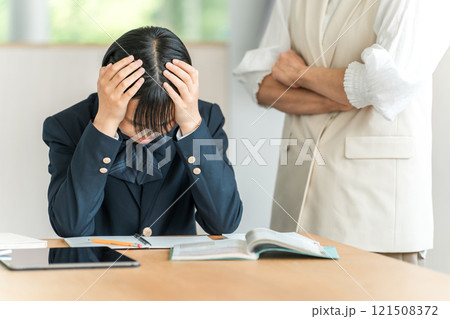勉強・受験のストレスで悩む中学生・高校生の女の子(ショック・落ち込む・パニック)