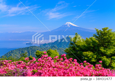 (静岡県)桜咲く、伊豆パノラマパークから望む富士山