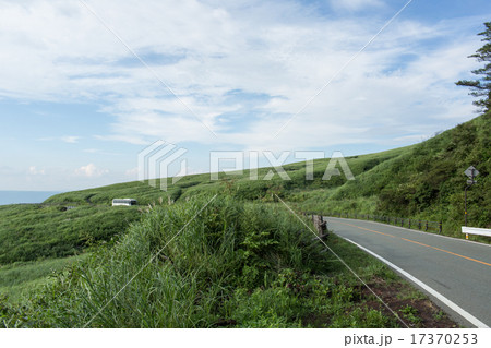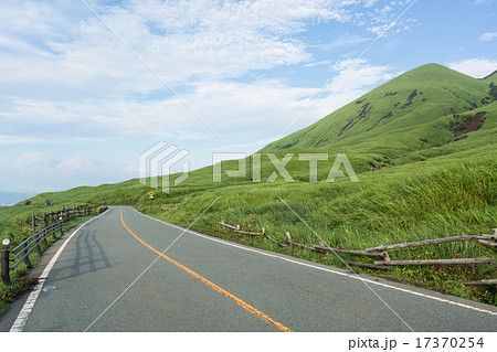 夏 阿蘇パノラマライン 坊中線 牧場沿いを走るドライブイメージ