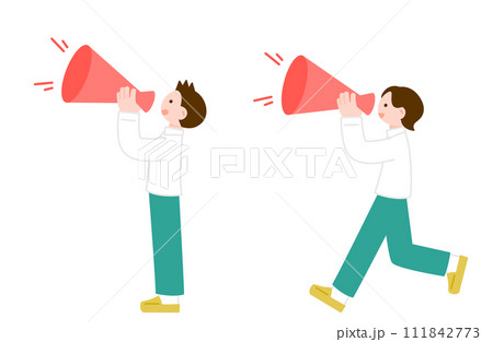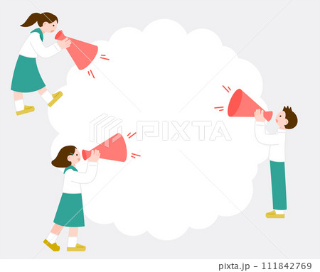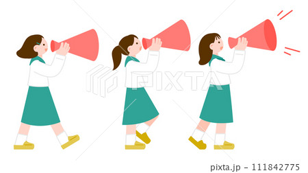 メガホンを持って意見を主張する女子学生のイラスト素材