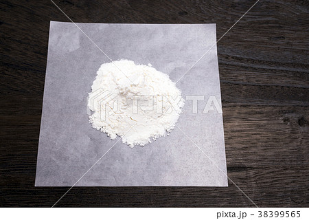 こげ茶色のテーブルにのせたパラピンの上の粉薬