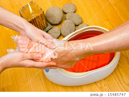 Paraffin bath. Spa Salon. Manicure. Process paraffin treatment.