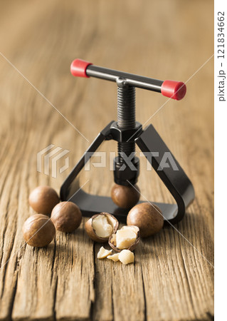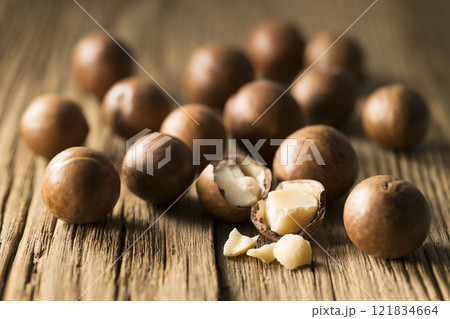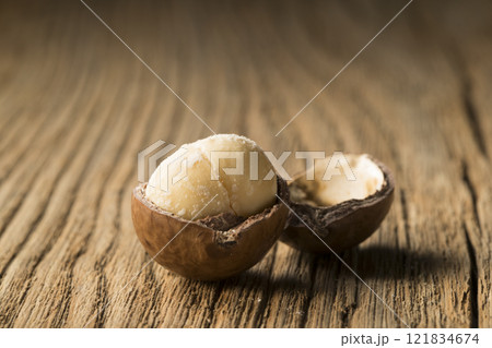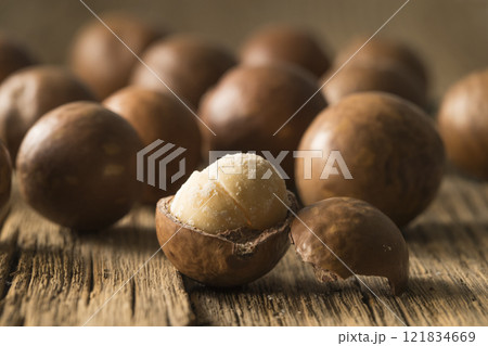 グラスに入ったマカダミアミルクとマカダミアナッツのイメージ素材