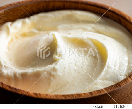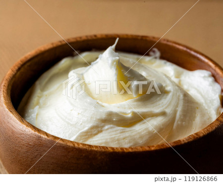 木製ボウルに盛り付けたホイップバター