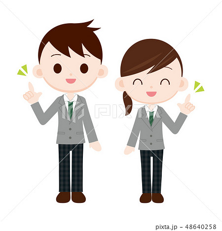 パンツスタイルの制服男女 指差し