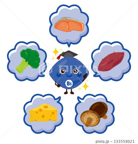 ビタミンB5を多く含む食品とビタミンB5のキャラクターイラストセット