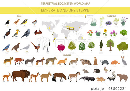 Temperate and dry steppe biome, grassland, prairie, pampas ecosystem