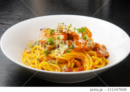 Pumpkin and Bacon spaghetti pasta, Pumpkin Carbonara