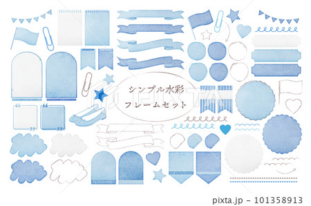 青のシンプル水彩フレームセット