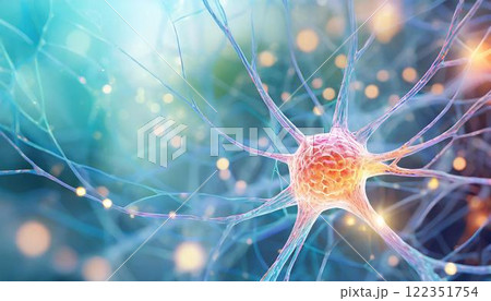 ニューロンなどの神経細胞が脳内のネットワークで情報を伝達しているイメージの3Dイラスト 医療系素材