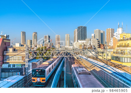 日本の川崎都市景観 武蔵小杉のタワーマンション群や武蔵小杉駅などを望む