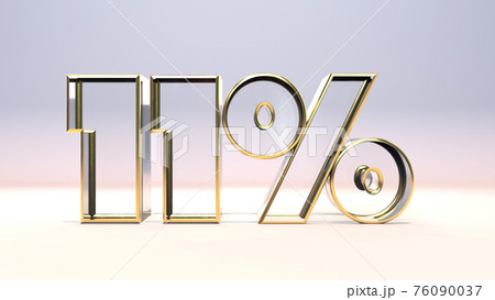 11% 3d glass material surrounded by a golden frame, discount business concept 3d render illustration