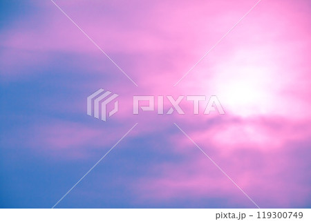 太陽とパープルピンクに染まった空のファンタジーなイメージ(背景素材)