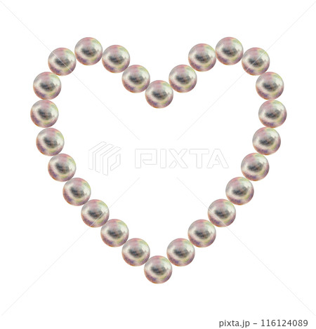 Frame of pearl in the shape of a heart. Watercolor illustration in pastel palette with holographic effect for poster, greeting card for Valentine's Day, engagement, wedding, Happy Mother's Day
