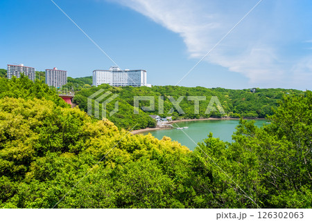 リゾートホテルのバルコニーから眺める南国の砂浜 静岡県熱海市