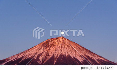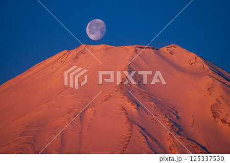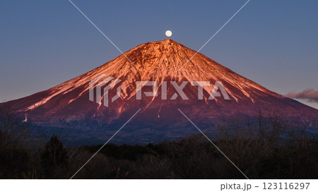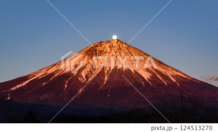 静岡県・富士宮市から見る紅富士と満月(パール富士)