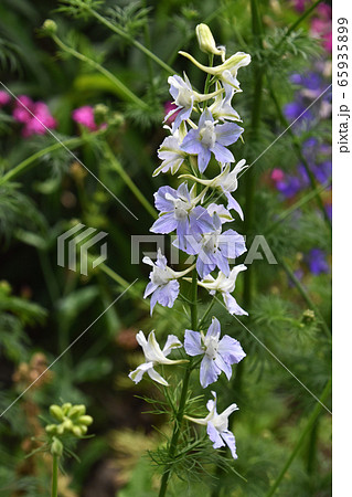 デルフィニウム(学名:Delphinium)の水色花が咲いています。